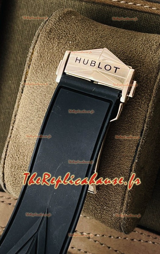 Bracelet en caoutchouc de haute qualité muni de boucles déployantes Hublot avec marquage Hublot comme à l'origine.