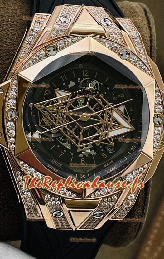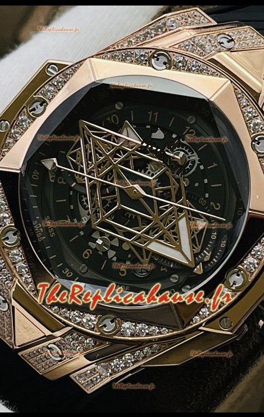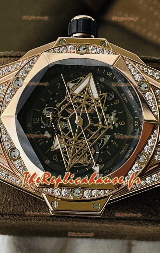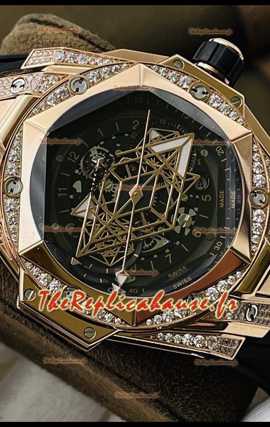 Hublot Big Bang UNICO Sang Bleu II Or Rose Diamants Qualité Miroir 1:1 Réplique Suisse