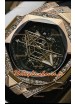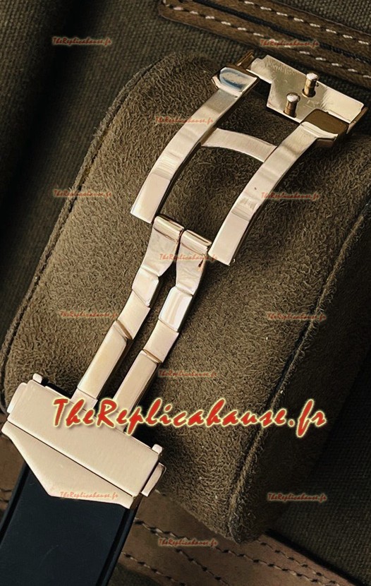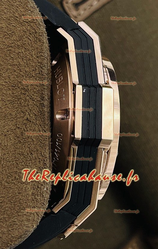 Placage en or rose 18 carats avec diamants incrustés sur un boîtier en acier inoxydable 904L de forme géométrique, l'une des techniques de production de boîtier de montre les plus avancées sur une réplique de montre pour lui donner un aspect miroir 1:1.