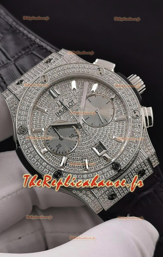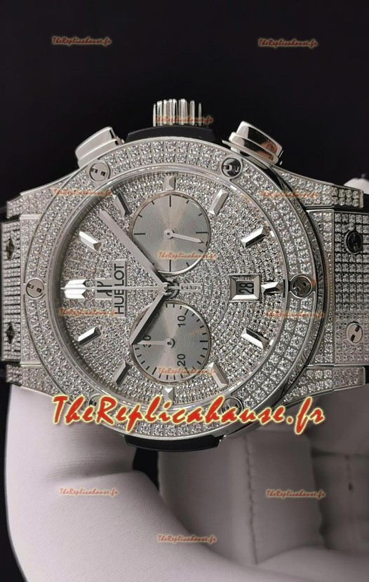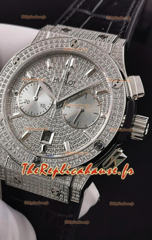 Hublot Classic Fusion Chronographe Acier Cadran et Boîtier Diamants Réplique Montres Miroir 1:1