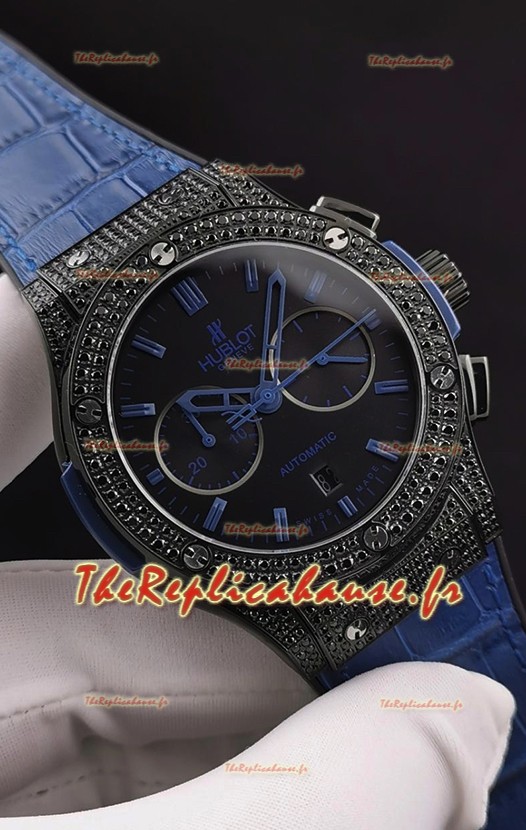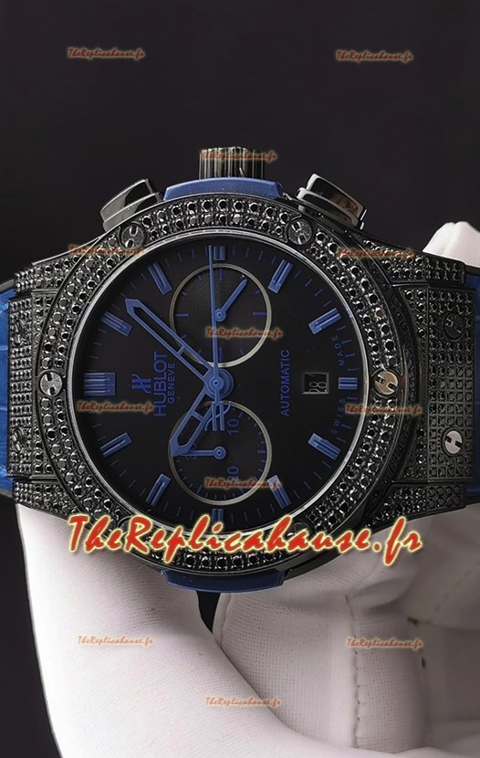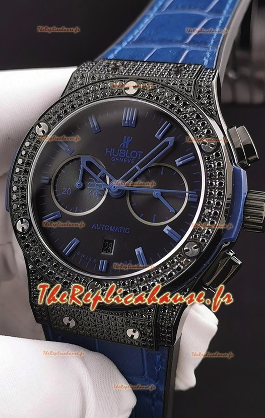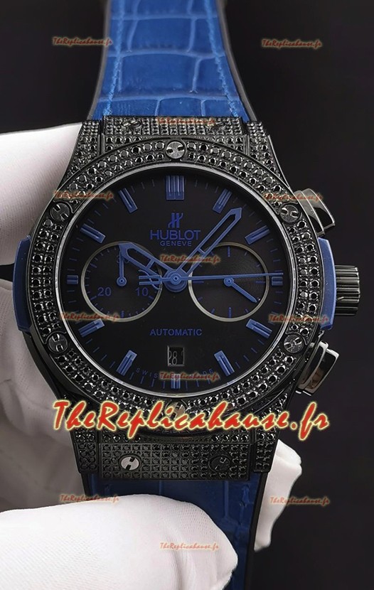 Hublot Classic Fusion Chronographe Boîtier DLC Diamants Cadran Acier Réplique Miroir 1:1