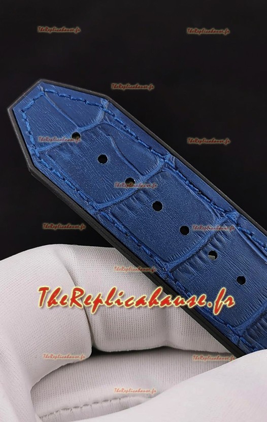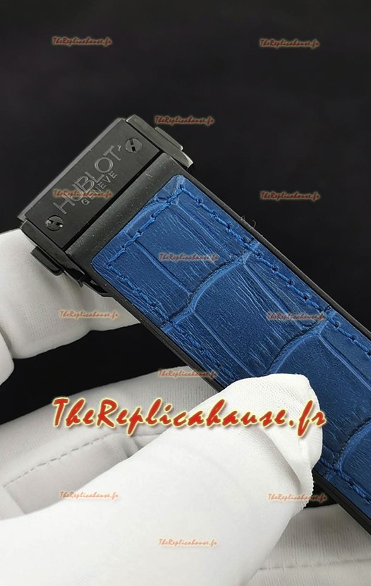 Bracelet en cuir gainé de caoutchouc avec boucle déployante en acier portant les marques et gravures Hublot.