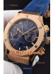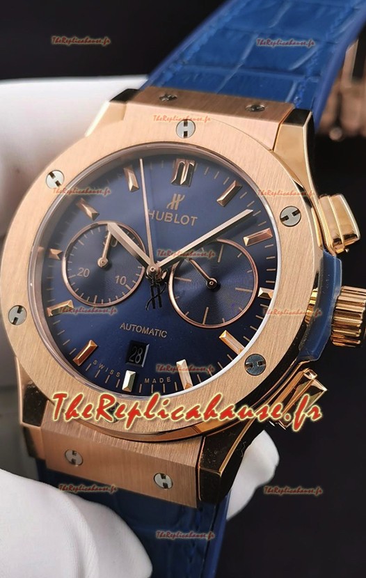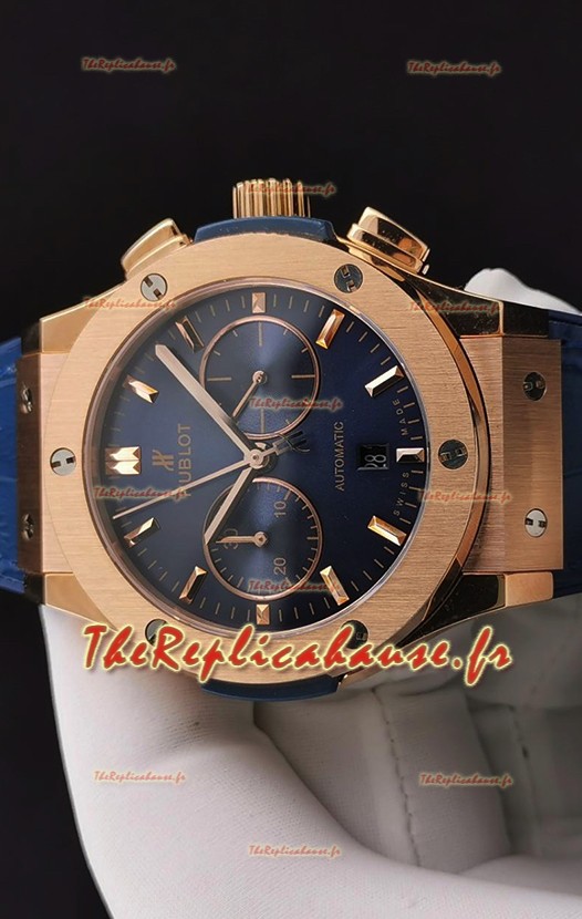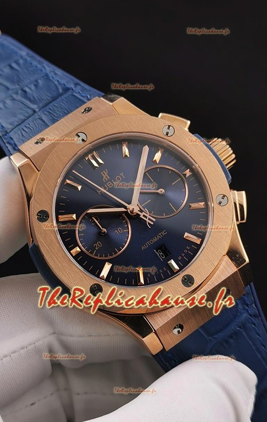 Hublot Classic Fusion Chronographe Boîtier en or rose Cadran bleu Réplique de montre miroir 1:1