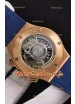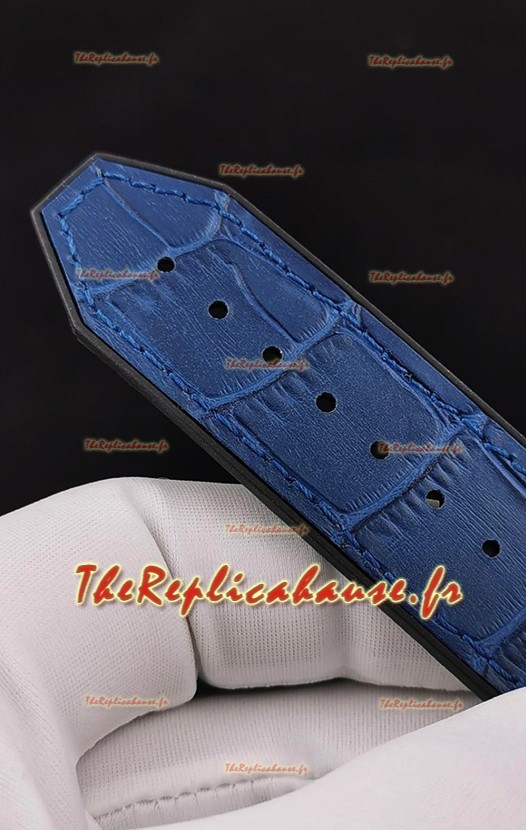 Bracelet en cuir recouvert de caoutchouc avec boucle déployante en acier, avec marquages et gravures Hublot.