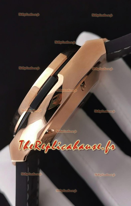 Boîtier en acier inoxydable 904L plaqué or rose 18 carats et incrusté de diamants, avec tous les marquages et gravures conformes aux originaux.