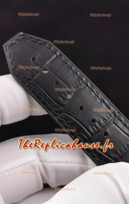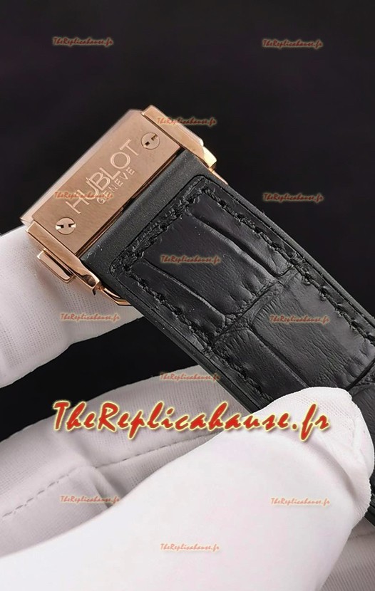 Bracelet en cuir gainé de caoutchouc avec boucle déployante en acier portant les marques et gravures Hublot.