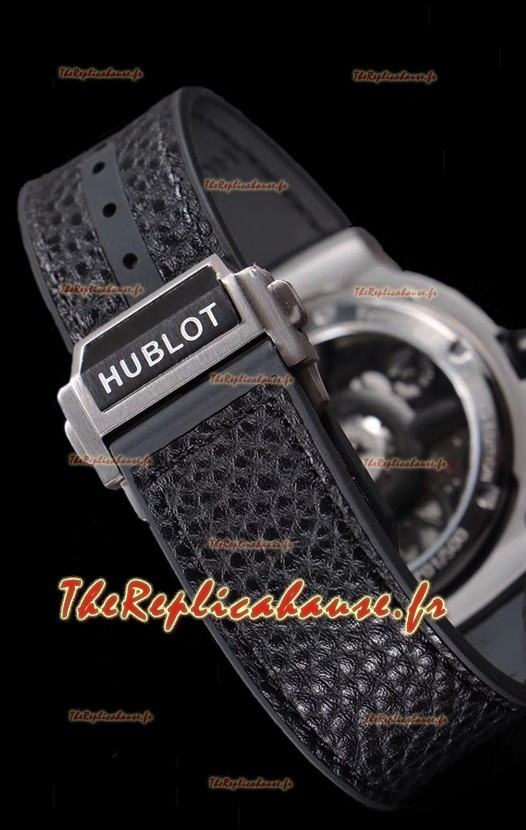Bracelet en caoutchouc avec fermoirs en acier avec marques et gravures Hublot.