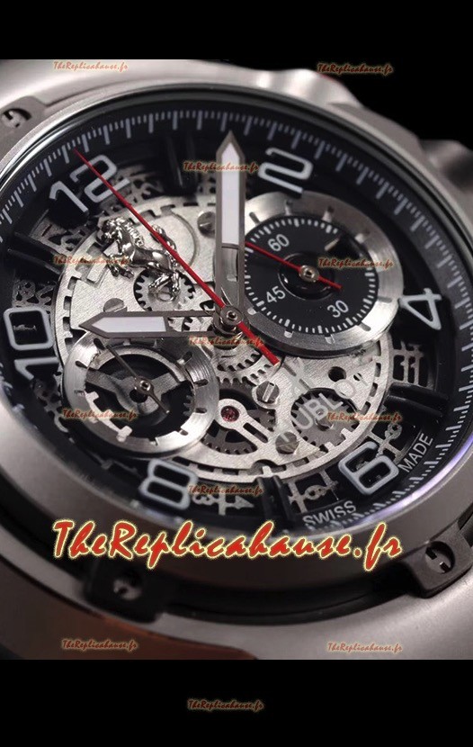 Cadran Skeleton avec deux sous cadrans fonctionnels comme aiguille des secondes et compteur en conjonction avec la fonction chronomètre