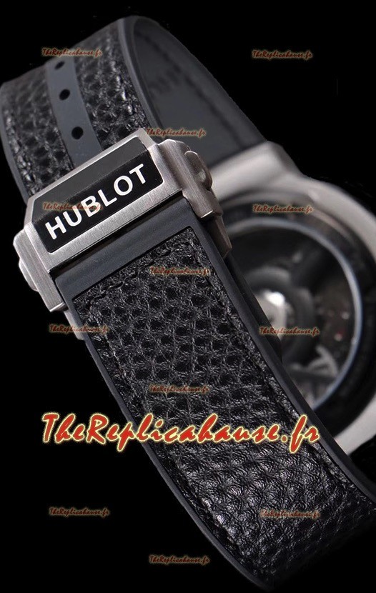 Bracelet en caoutchouc avec fermoirs en acier avec marques et gravures Hublot.
