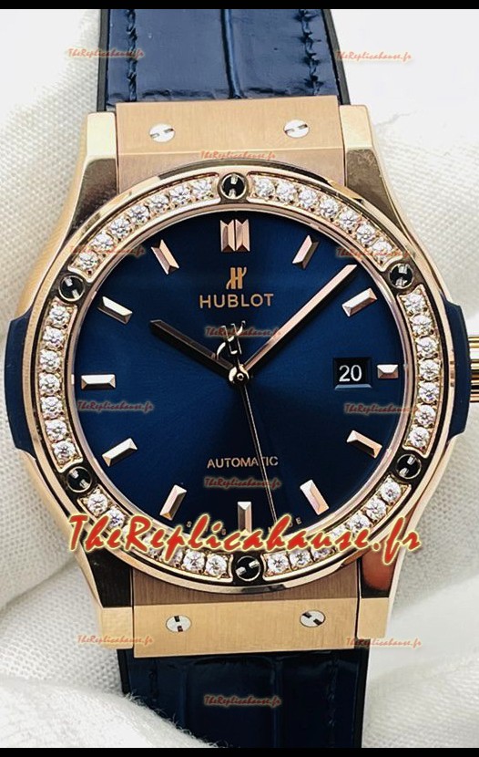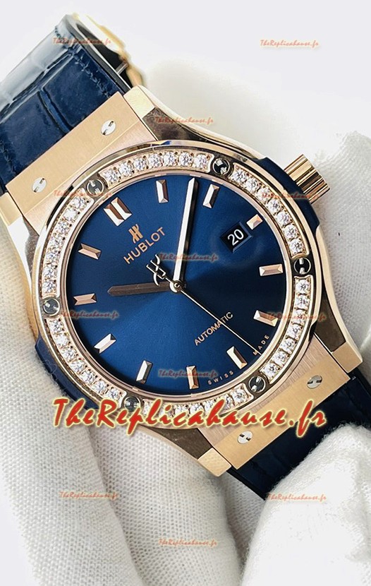 Hublot Classic Fusion Or Rose Acier Cadran Bleu Réplique de Montre Suisse 1:1 Qualité Miroir