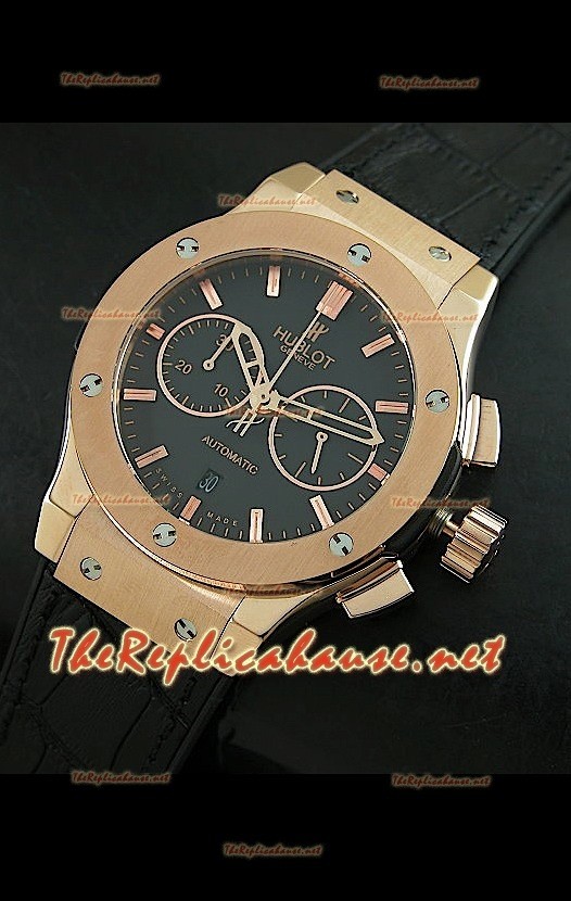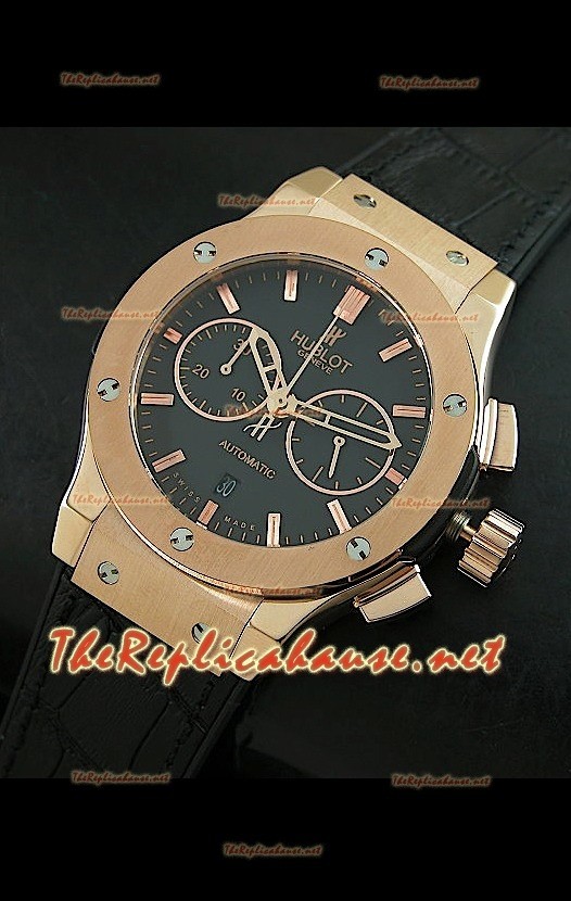 Hublot Classic Fusion Swiss Montre Cadran Noir Boîtier Or Rose