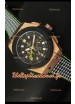 Plaquage or rose sur boîtier en acier inoxydable massif 440 avec boîtier arrière massif et lunette en carbone noire