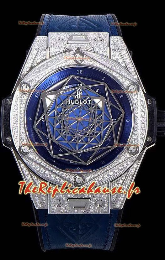 Montre Hublot Big Bang One Click Sang Bleu Réplique Miroir 1:1 dans un boîtier en acier inoxydable 45MM - Cadran Bleu
