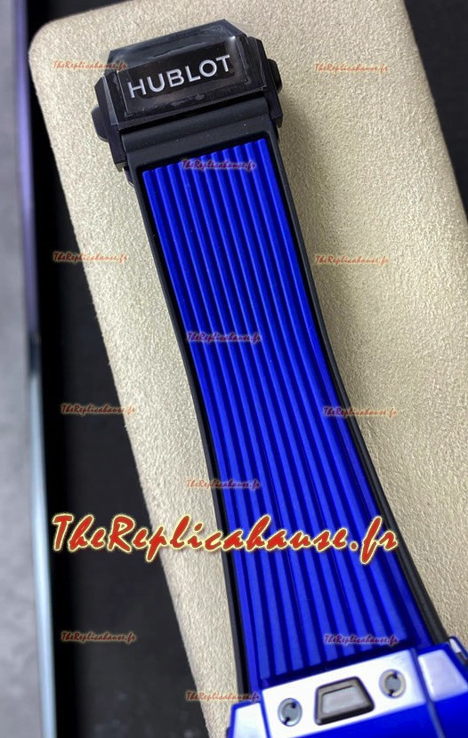 Bracelet en caoutchouc véritable avec boucle déployante, avec marquages et gravures Hublot.