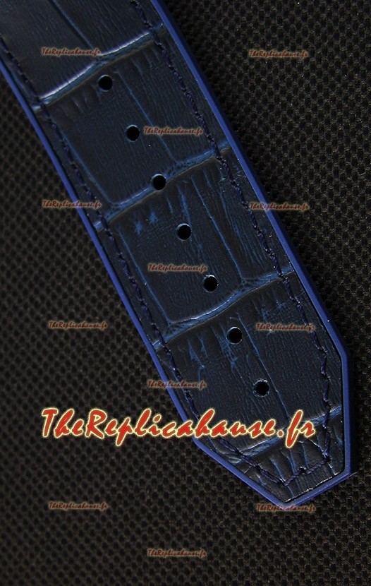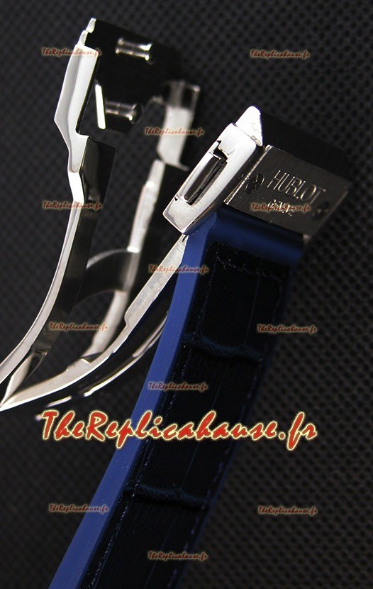 Bracelet en cuir recouvert de caoutchouc avec boucle déployante en acier avec marquages et gravures Hublot.