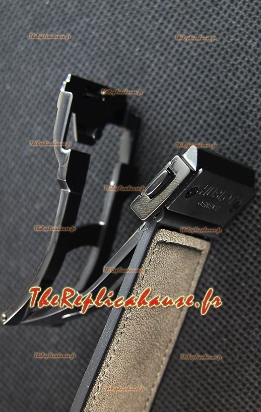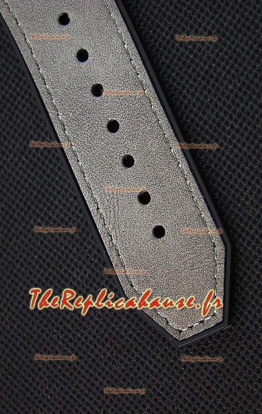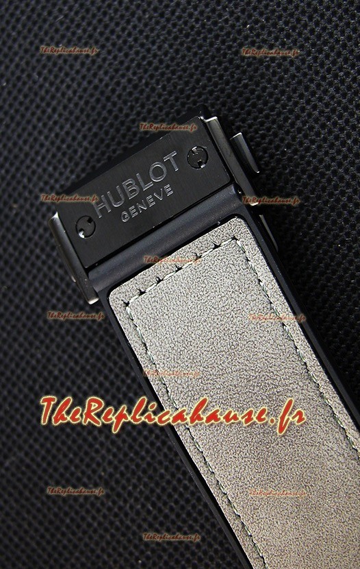 Bracelet en cuir recouvert de caoutchouc avec fermoir enduit de PVD avec marquages et gravures Hublot.