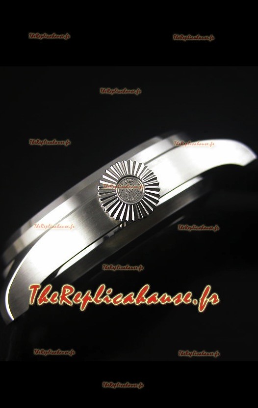 Mouvement Suisse Hautement Modifié avec une Plaque Décorée Exactement comme les Originales – La machinerie suit exactement celle des Originales pour ressembler au Mouvement Cal.5111. Rotor et Plaque en Platine.