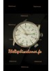Cadran blanc avec index bâtons pour les heures et fenêtre pour date à 3 heures Lunette intérieure rotative pouvant être réglée indépendamment.