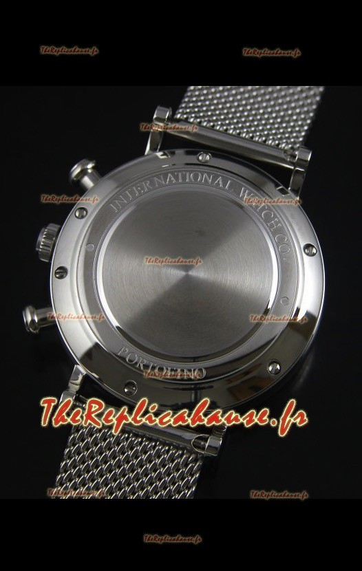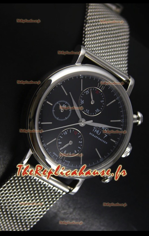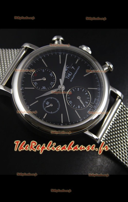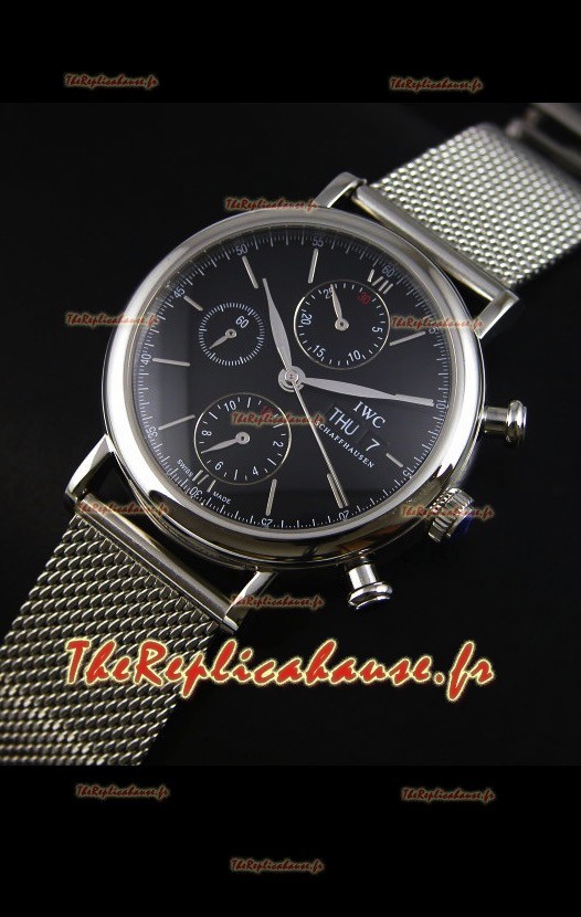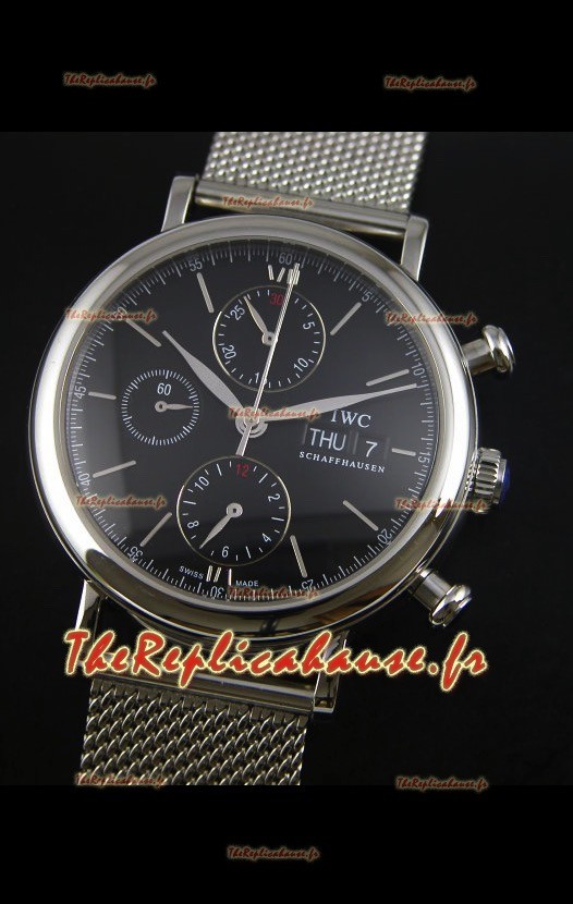 Montre suisse chronographe IWC Portofino avec bracelet en mailles et cadran noir