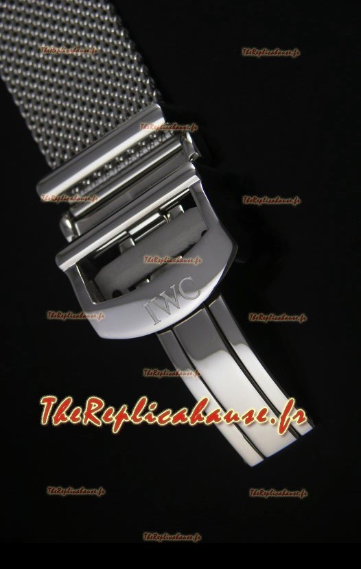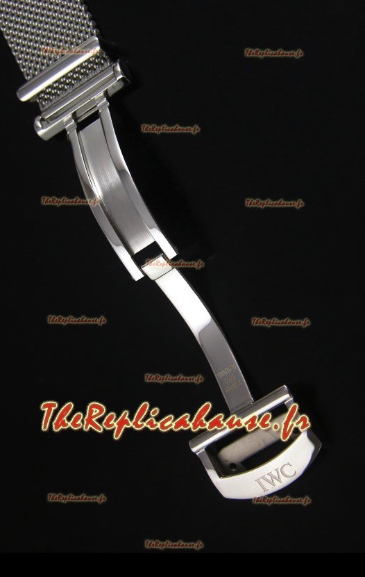 Bracelet en mailles en acier inoxydable 316L avec boucle déployante complétée par des marquages et des gravures IWC