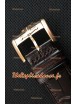 Bracelet en cuir véritable avec fermoirs pliants en acier inoxydable plaqué Rose Or avec marquages et gravures JCL