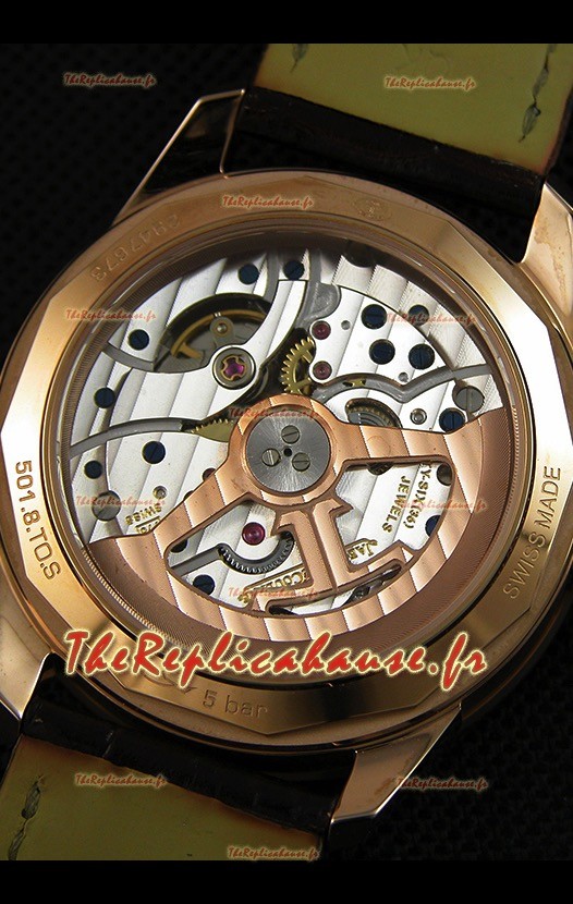 Boîtier en acier inoxydable poli 316L plaqué or rose 18 carats avec fond ouvert