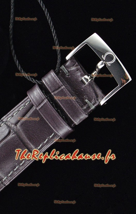 Bracelet en cuir véritable avec boucle en acier inoxydable avec marques et gravures Omega