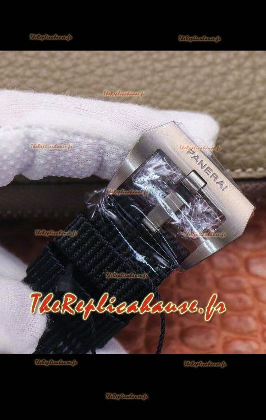 Bracelet hybride caoutchouc/cuir avec boucle à ardillon en titane avec marquages et gravures Panerai.