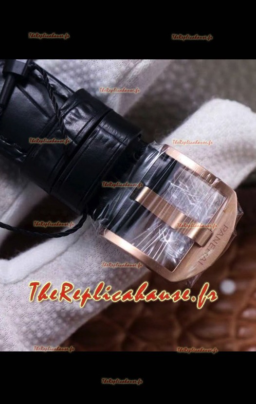 Bracelet en cuir véritable avec boucle à ardillon en acier avec finition or rose - avec marquages et gravures Panerai.