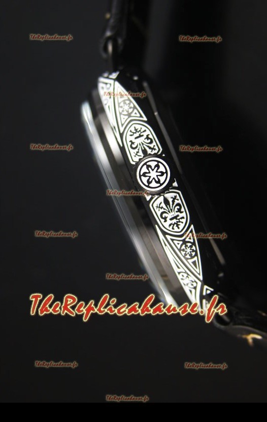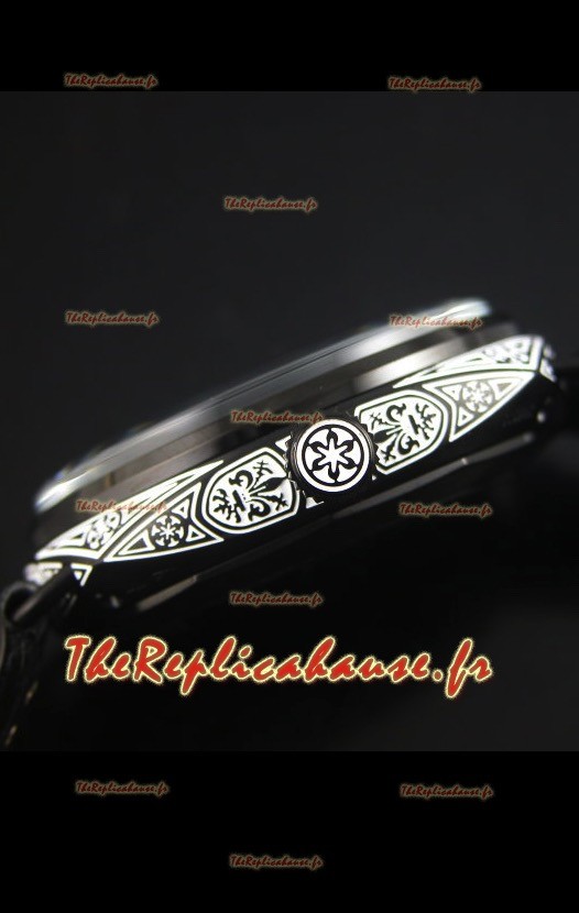 Revêtement DLC sur boîtier en acier inoxydable avec détails floraux gravés sur le boîtier extérieur