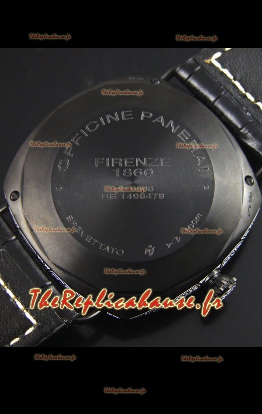 Boîtier arrière transparent avec verres saphir complété par des marquages et des gravures Panerai