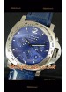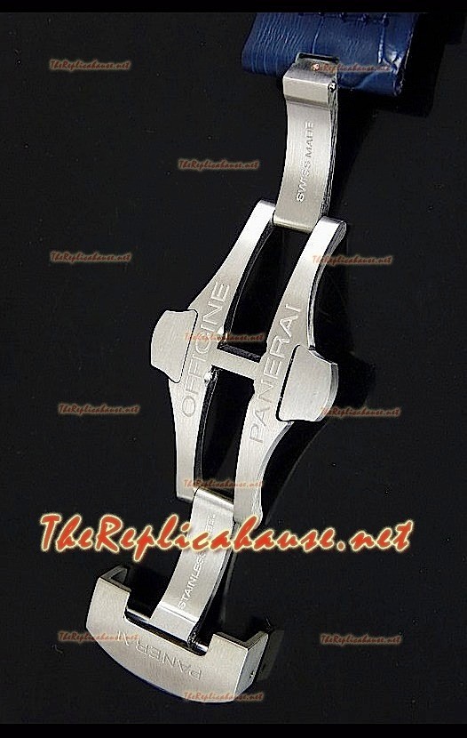 Bracelet Bleu en Cuir Véritable avec Fermoir papillon en Acier Inoxydable, le Logo et des Inscriptions Panerai