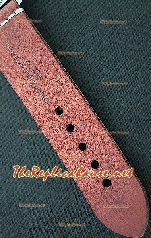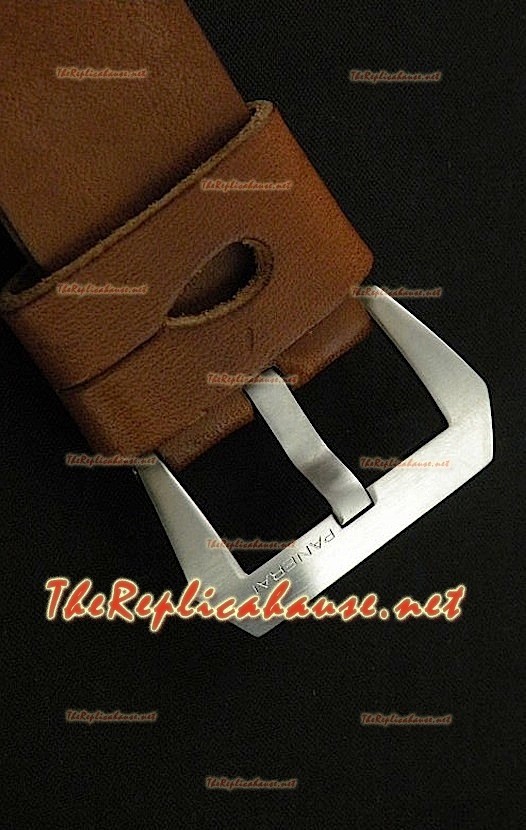 Bracelet Marron en Cuir avec des Inscriptions Panerai et Boucle à Ardillon en Acier