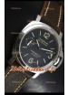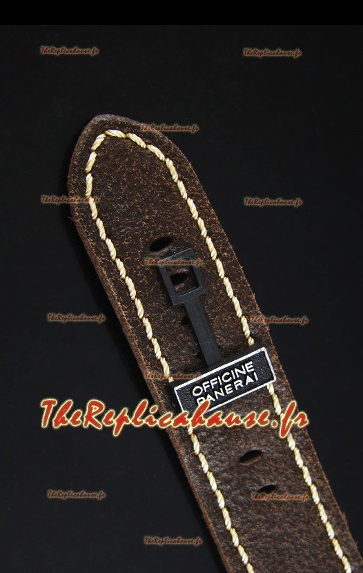 Bracelet en véritable peau de veau détendue noir douce avec boucle ardillon en acier complétée par des marquages et des gravures Panerai