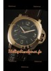 Bracelet en cuir marron avec boucle plaquée or complétée avec marquages et gravures Panerai.