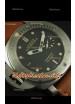 Bracelet épais en cuir marron avec boucle ardillon en titane complétée avec marquages et gravures Panerai.
