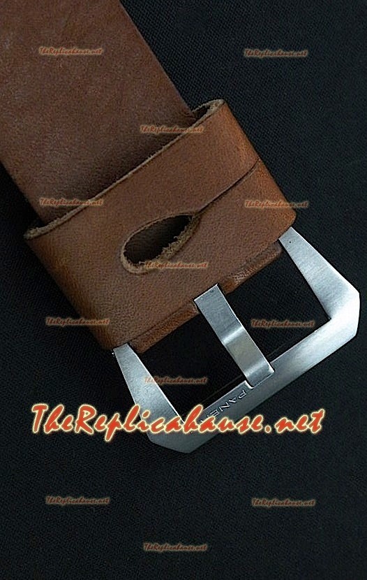 Bracelet Brun Clair en Cuir avec des Inscriptions Panerai et Boucle à Ardillon en Acier