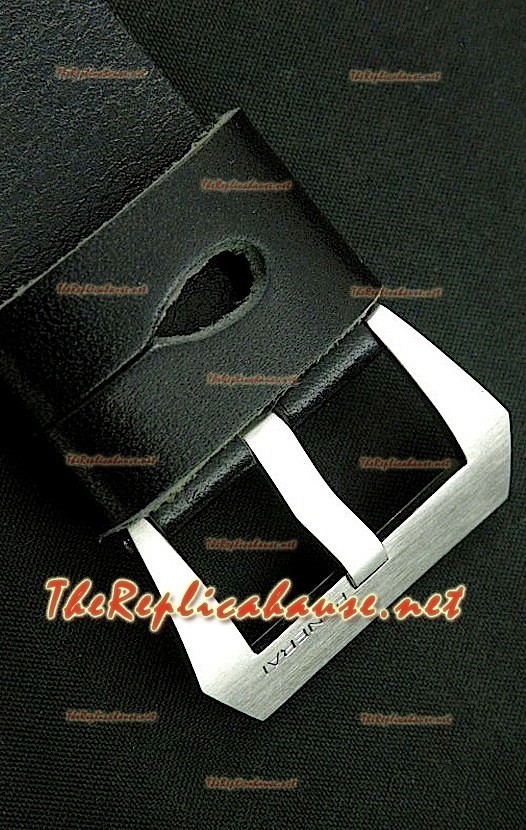 Bracelet Brun Foncé en Cuir avec des Inscriptions Panerai et Boucle à Ardillon en Acier