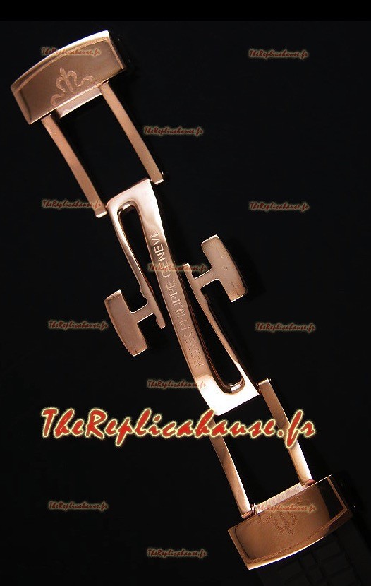 Bracelet en Caoutchouc Noir avec un Fermoir Déployant accompagné de Marques Patek Philippe.