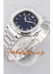 Cadran bleu texturé avec guichet de date à 6 heures.