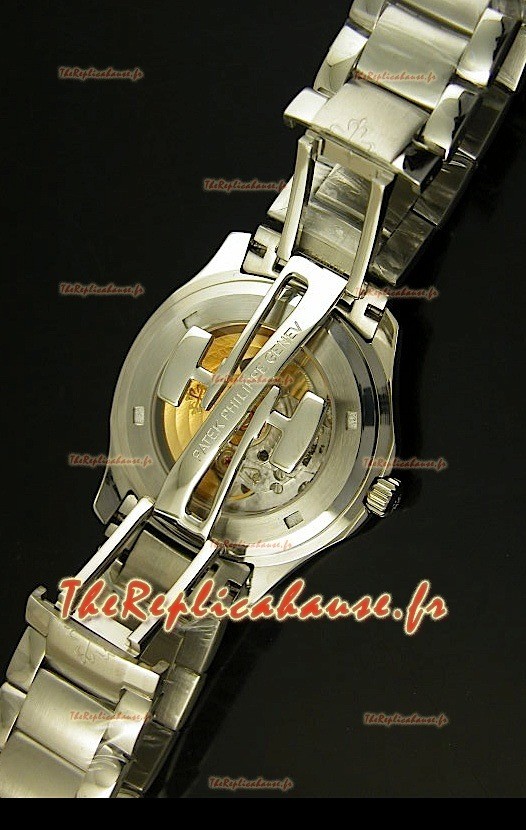 Boîtier en acier inoxydable 440 avec marquages et gravures Patek Philippe sur le boîtier arrière