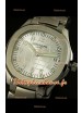 Cadran en acier blanc avec fenêtre pour date à 3 heures.