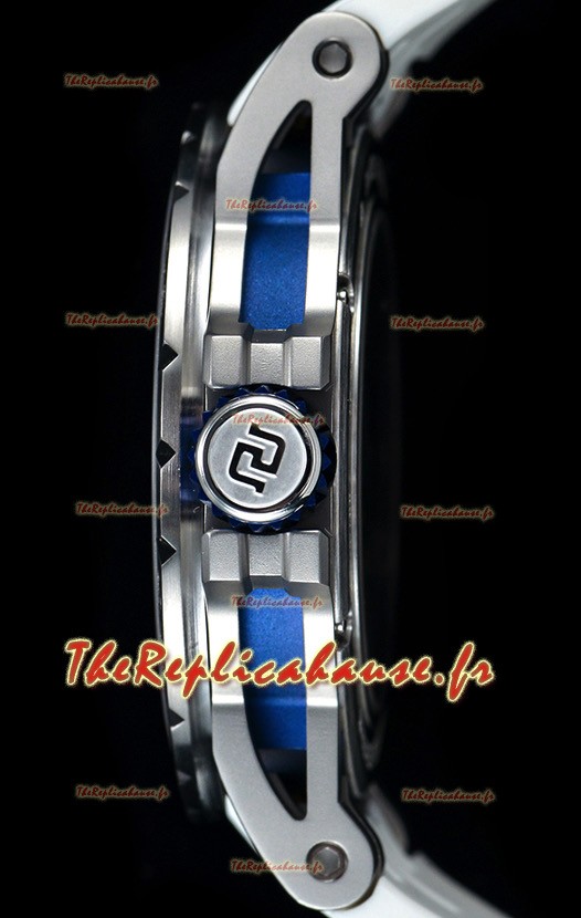 Bracelet en caoutchouc blanc véritable avec boucle déployante en acier inoxydable avec marquages et gravures de Roger Dubuis