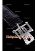 Bracelet en cuir noir véritable avec fermoirs en acier inoxydable, avec marquages et gravures Vacheron Constantin.